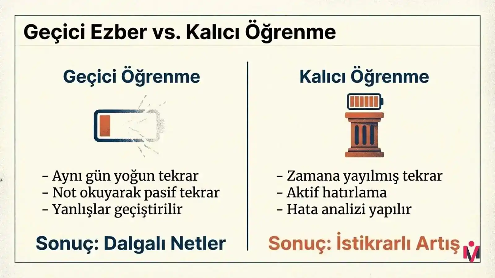 Kısacası: Kalıcı öğrenme, ezberi değil; net artışını sürdürülebilir hâle getiren bir öğrenme sistemidir.