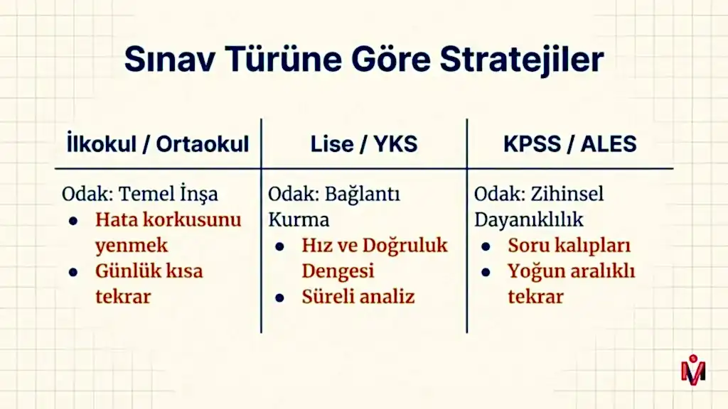 | Sınav / Seviye | Öncelikli Odak | Sistem Vurgusu |